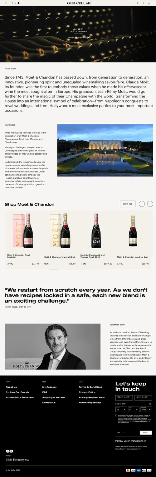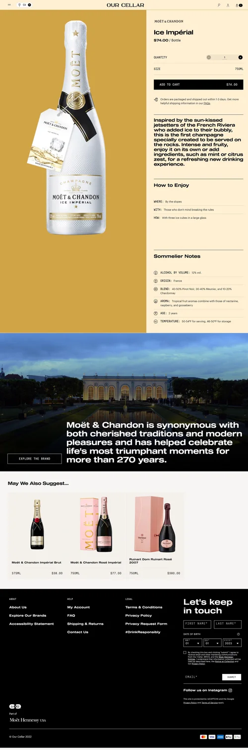 The assignment was to help Moët Hennessy launch Our Cellar, the company’s first direct-to-consumer online store in the U.S. I created several hundred brand and product pages for their portfolio of Champagne, wine, and spirit brands across multiple phases.